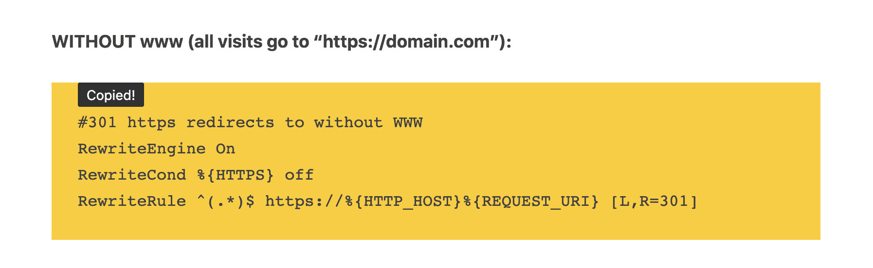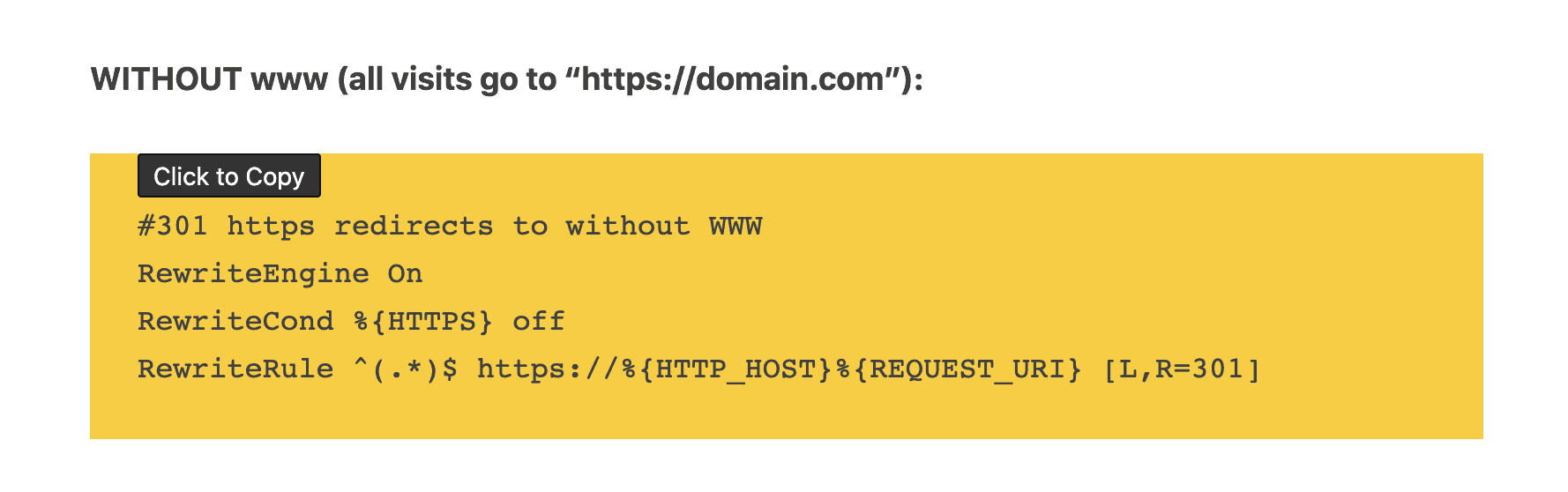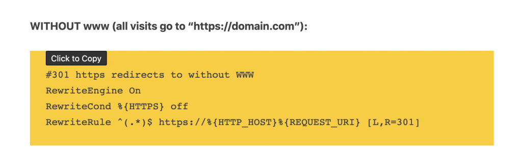 Click anywhere within <pre> code tags to automatically copy to clipboard.