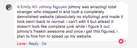 His depth-of-knowledge is amazing (Web developer? Web guru? lol? Blogger extraordinaire?), and I feel pumped about any recommendations he makes about my blog. I’d hire Johnny in a heartbeat for anything WordPress or blogging business related. Highly recommend!
