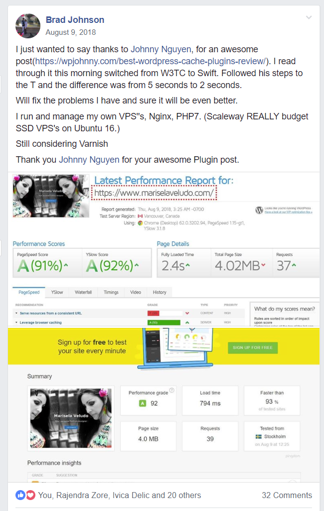 I basically had these 2 issues slowing down my site. It is strange to let a stranger take care of my site, I felt so useless. I have seen you are very present on the fb group, and people like me are lucky to have people like you. Johnny, huge thanks for your help. I really appreciate and thank you a lot. You are amazing, man.