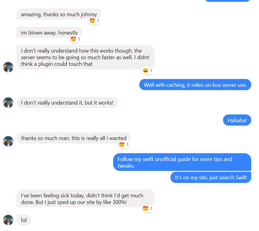 Johnny is a very experienced and helpful WordPress expert who increased my site speed exponentially. My webpage went from 10-13 seconds on every click down to now instantaneous, even on my phone! The site is crazy fast, holy sh*t, insane. I had no idea my site could be this fast, it’s 1000 times better.